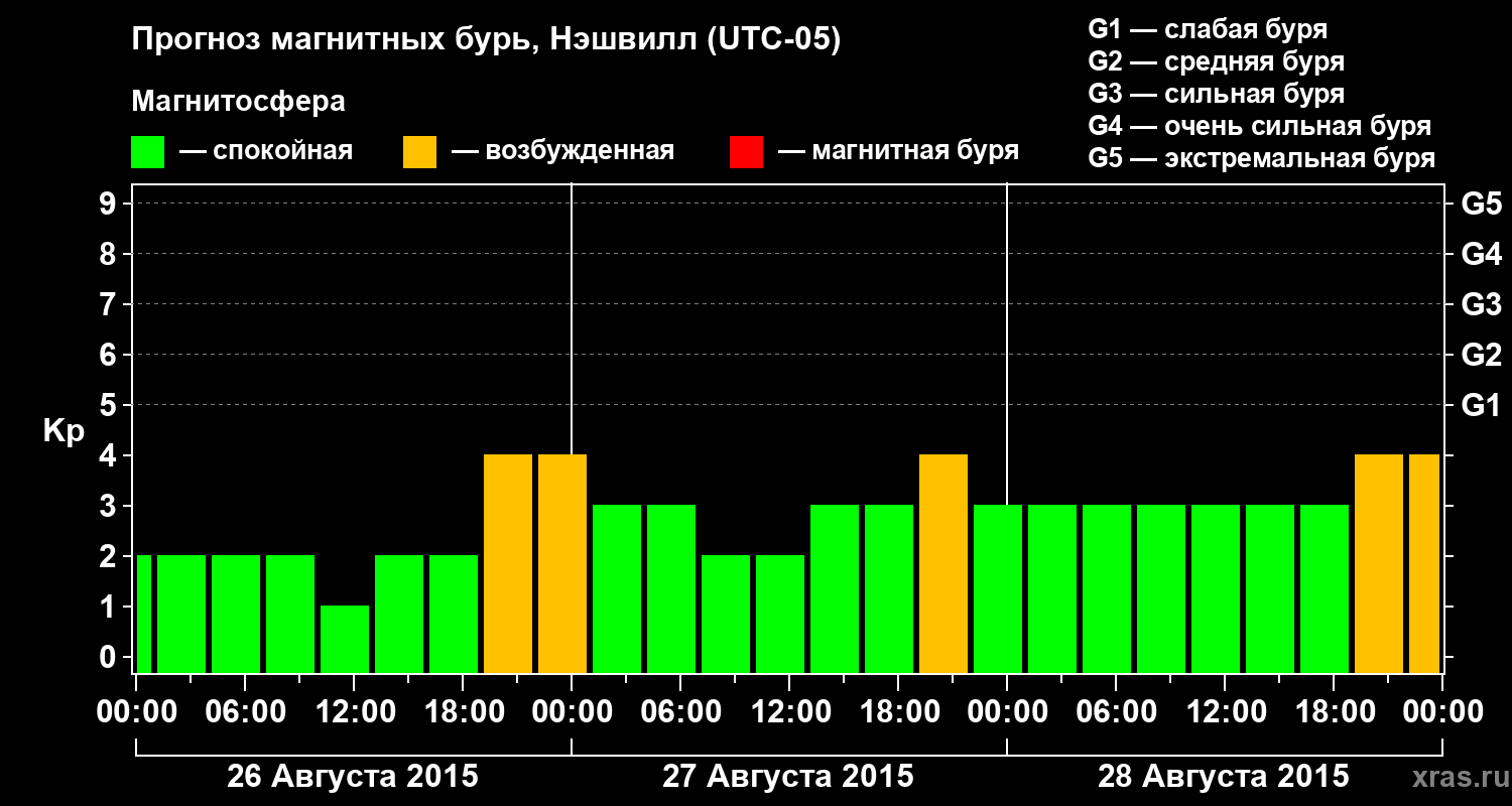 Прогноз магнитных бурь в Нэшвилле — 26 августа 2015 года