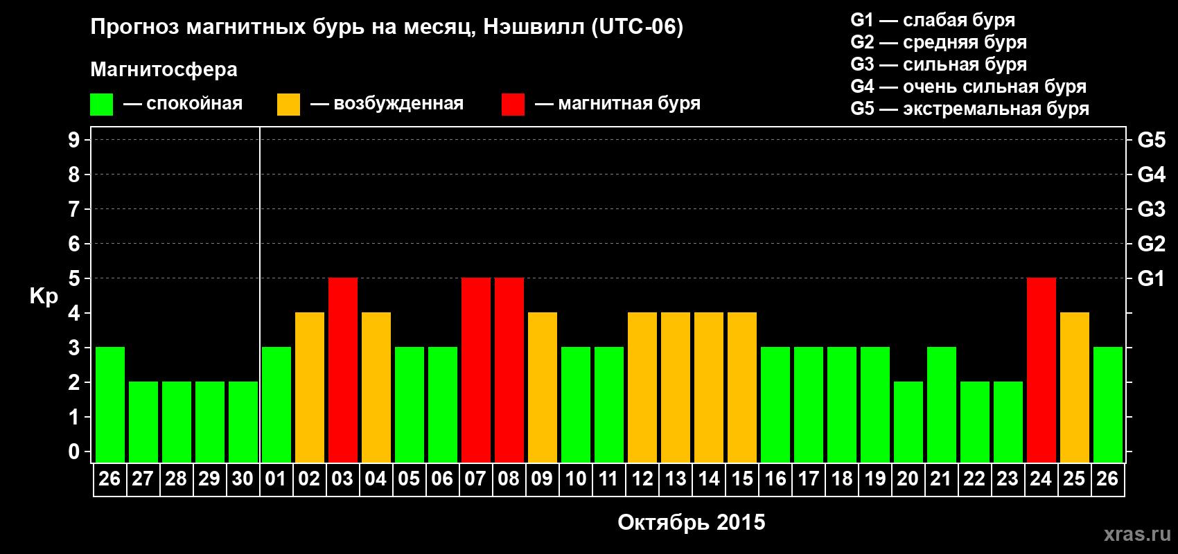 Прогноз магнитных бурь в Нэшвилле — 26 сентября 2015 года