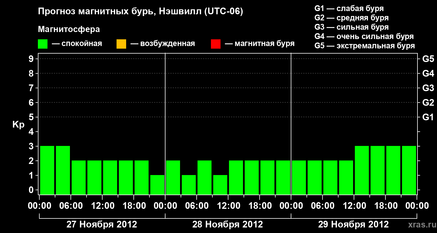 Прогноз магнитных бурь в Нэшвилле — 27 ноября 2012 года