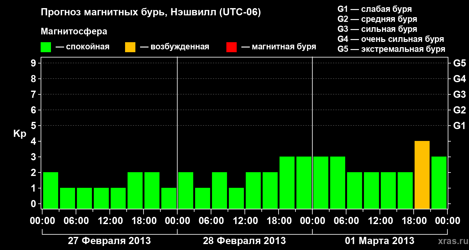 Прогноз магнитных бурь в Нэшвилле — 27 февраля 2013 года