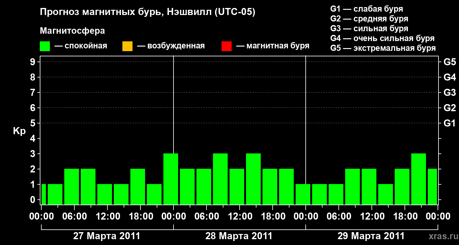 Прогноз магнитных бурь в Нэшвилле — 27 марта 2011 года