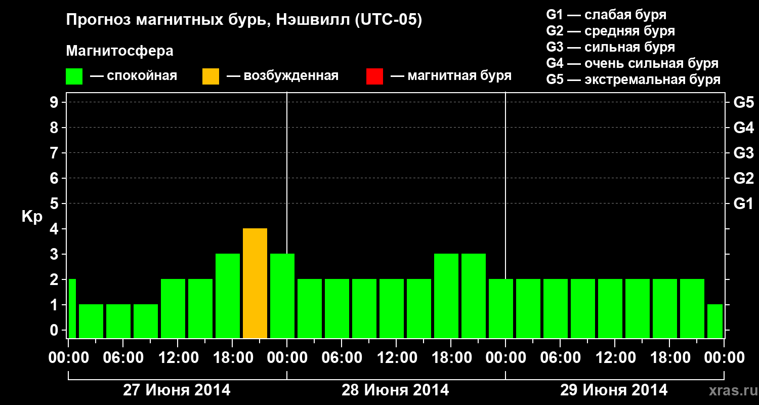 Прогноз магнитных бурь в Нэшвилле — 27 июня 2014 года