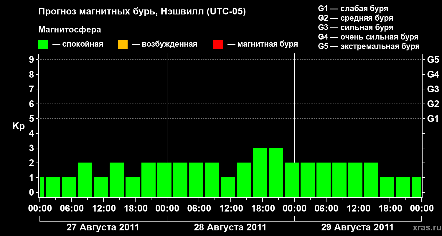 Прогноз магнитных бурь в Нэшвилле — 27 августа 2011 года