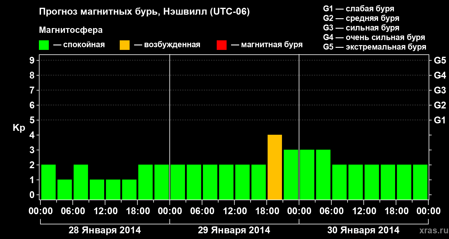 Прогноз магнитных бурь в Нэшвилле — 28 января 2014 года
