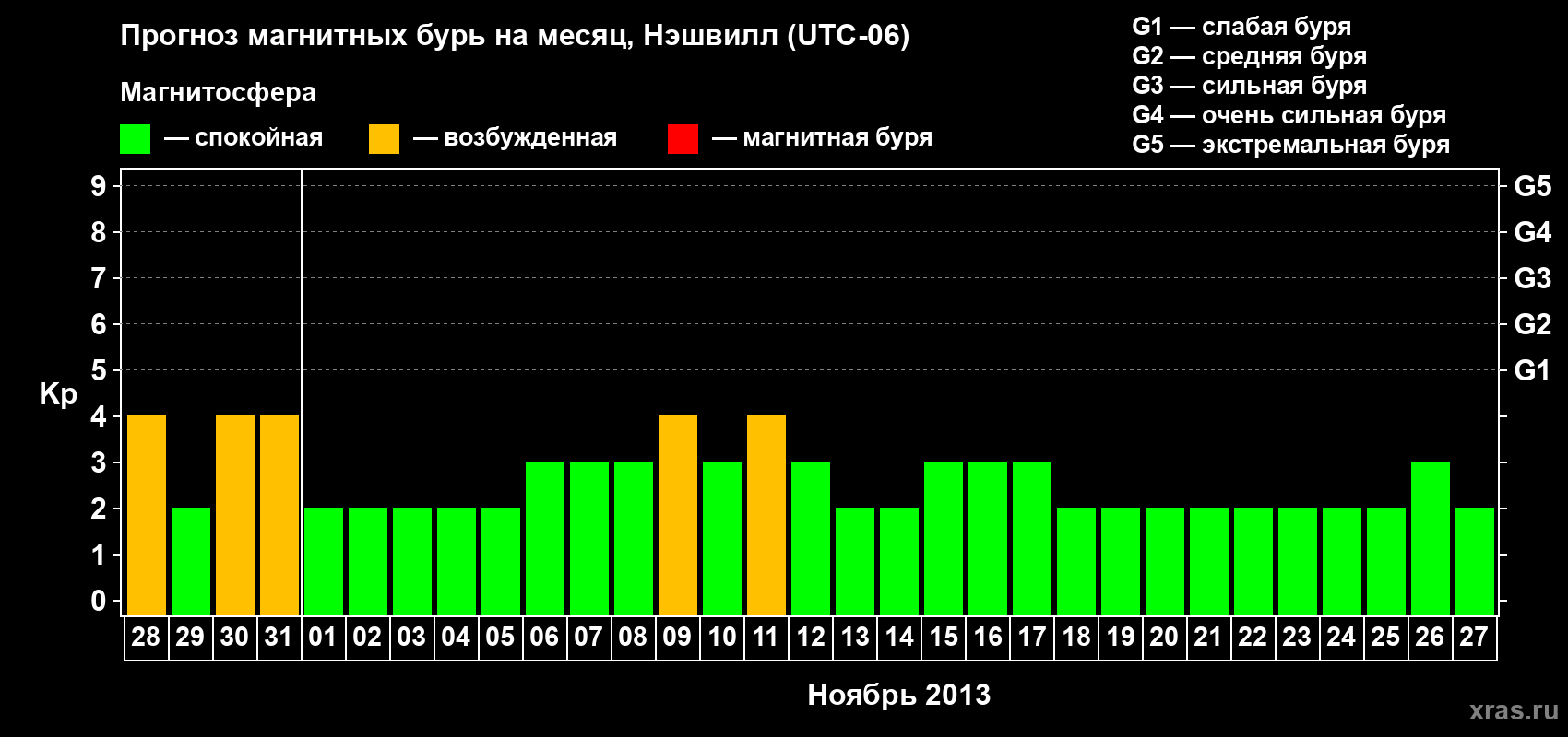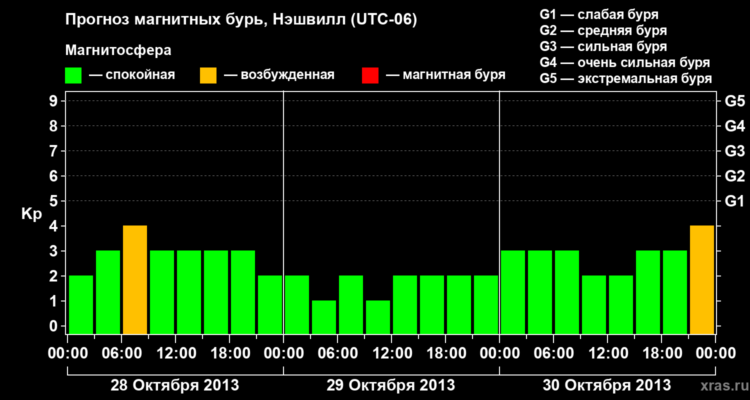 Прогноз магнитных бурь в Нэшвилле — 28 октября 2013 года
