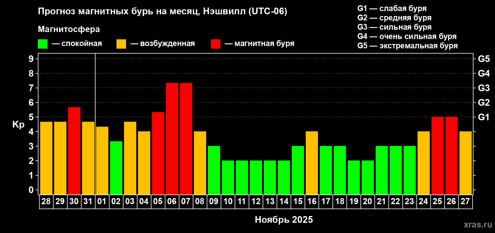 Прогноз магнитных бурь в Нэшвилле — 28 октября 2025 года