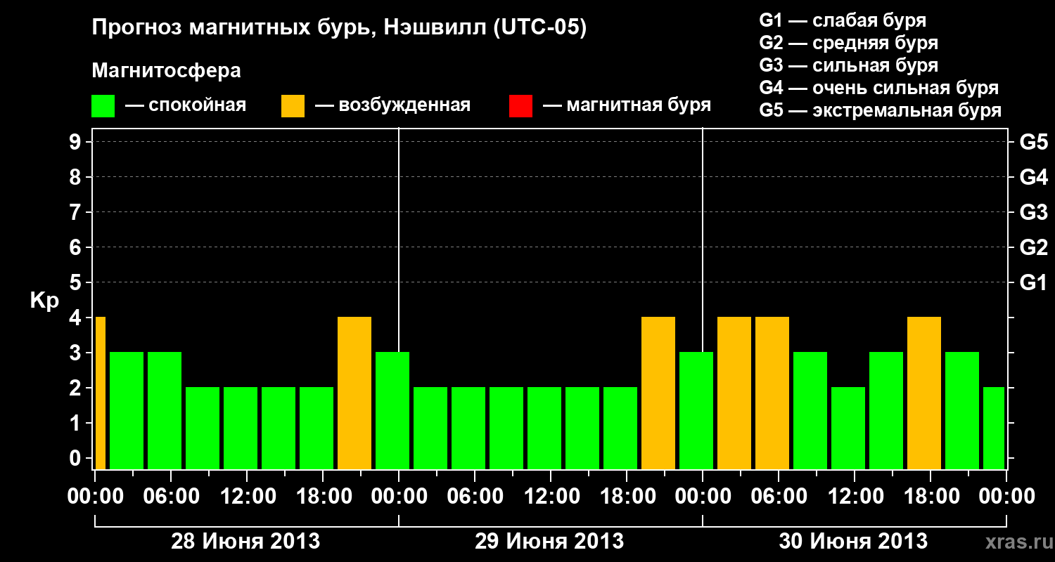 Прогноз магнитных бурь в Нэшвилле — 28 июня 2013 года