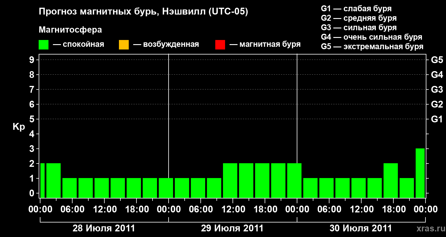 Прогноз магнитных бурь в Нэшвилле — 28 июля 2011 года