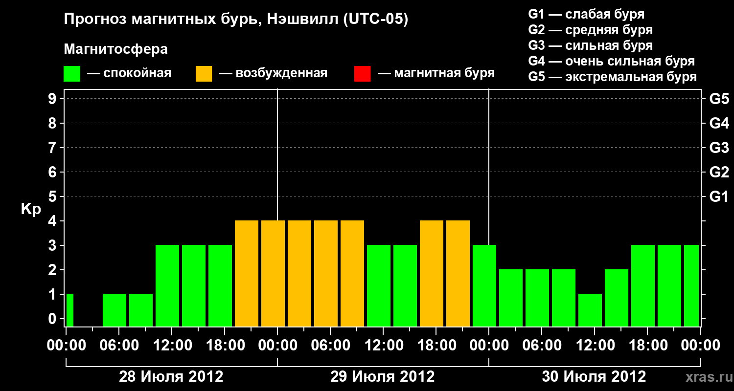 Прогноз магнитных бурь в Нэшвилле — 28 июля 2012 года