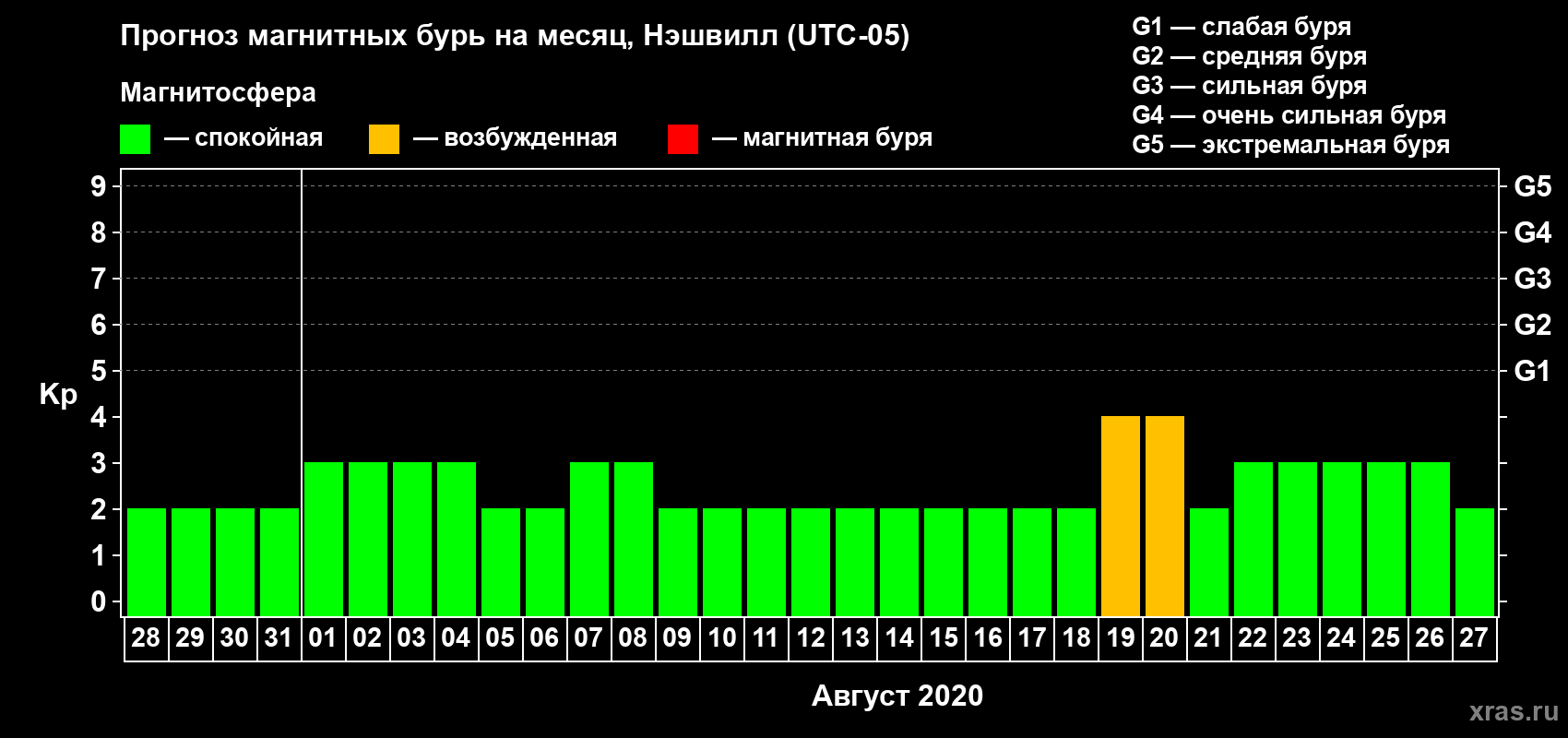 Прогноз магнитных бурь в Нэшвилле — 28 июля 2020 года