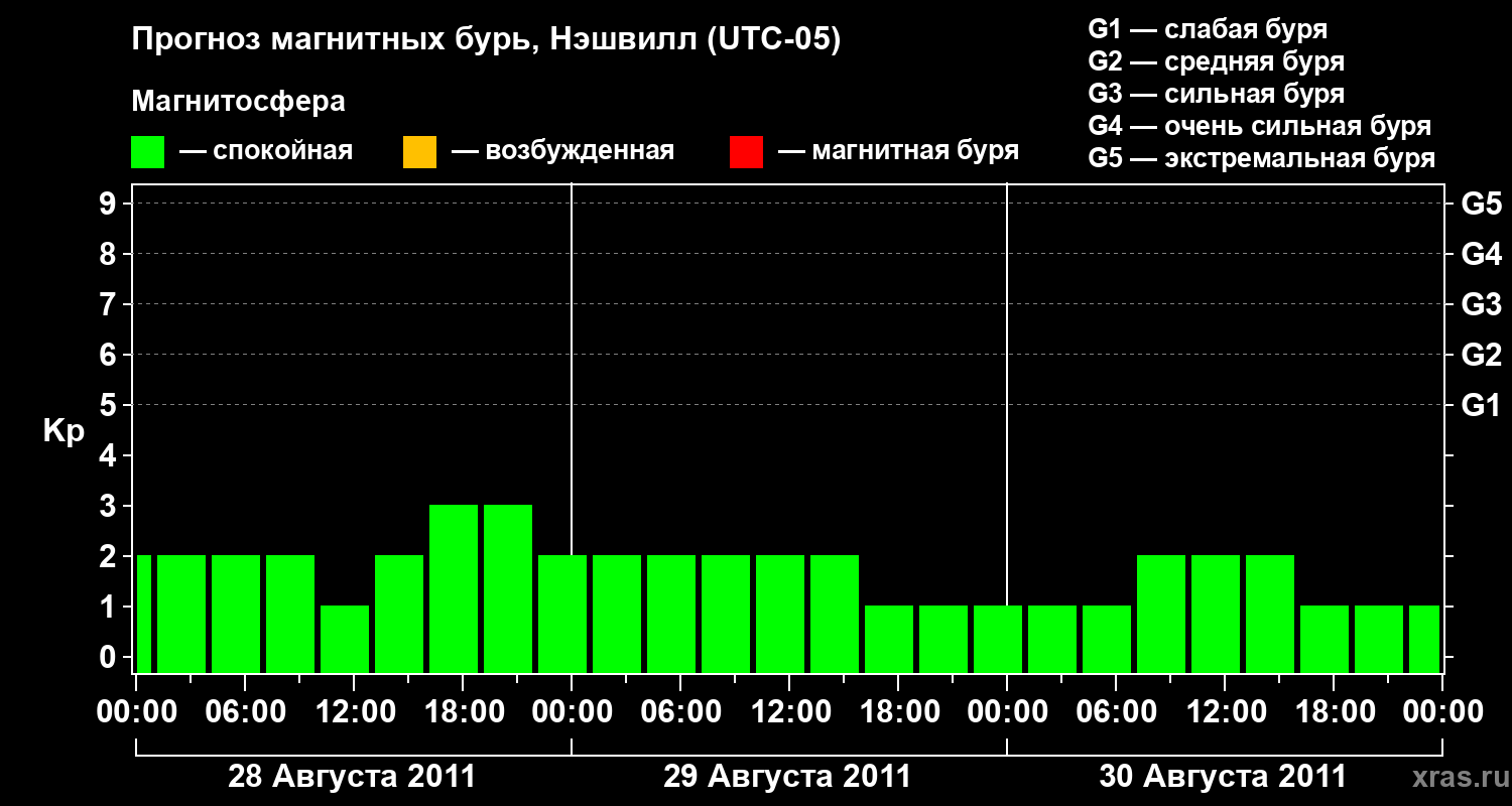 Прогноз магнитных бурь в Нэшвилле — 28 августа 2011 года
