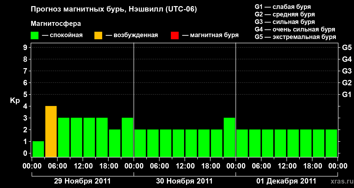 Прогноз магнитных бурь в Нэшвилле — 29 ноября 2011 года