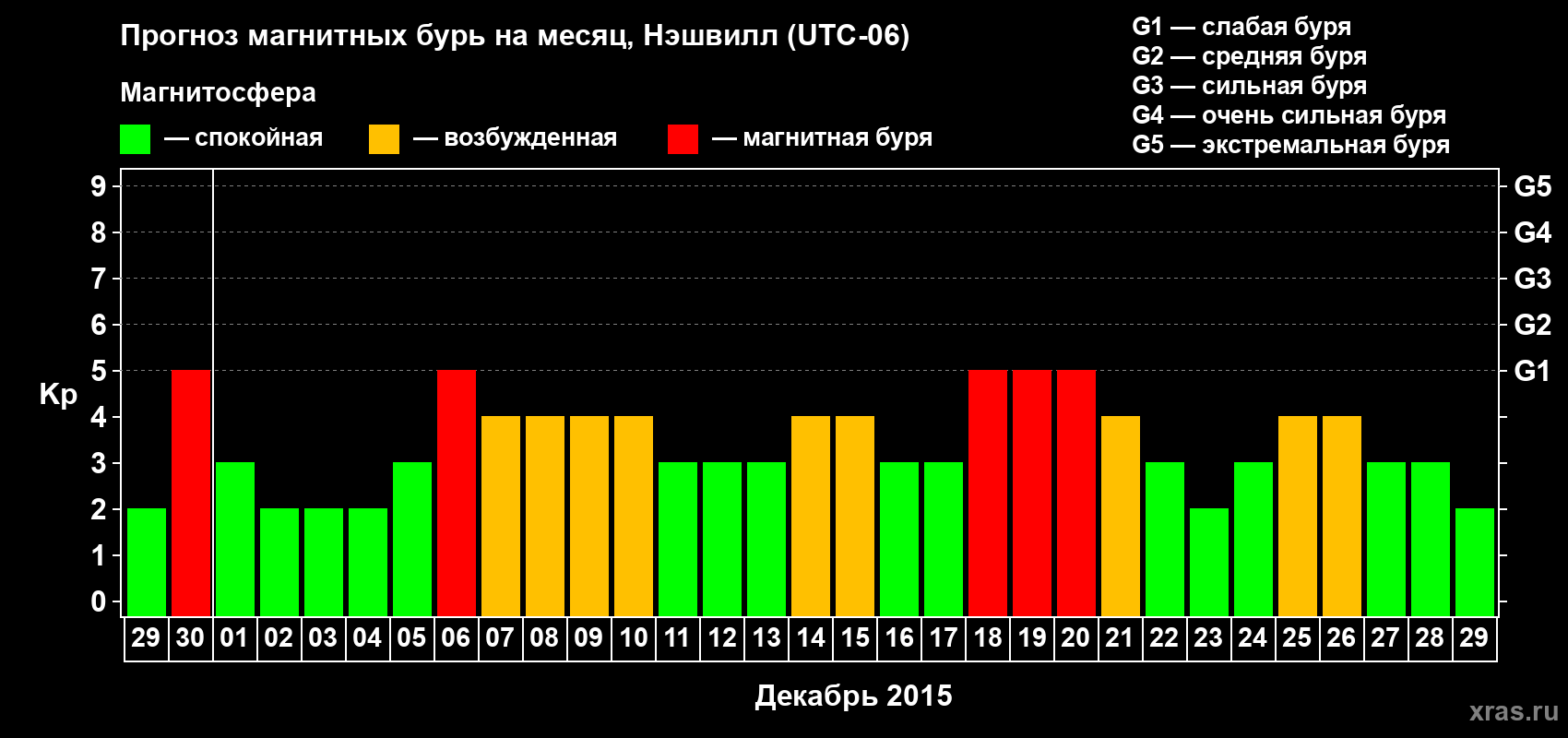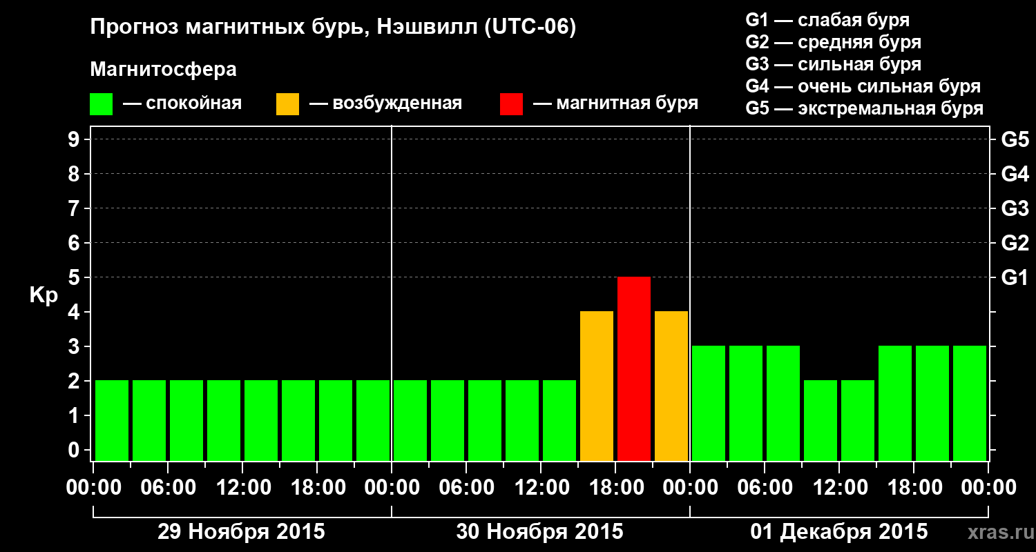 Прогноз магнитных бурь в Нэшвилле — 29 ноября 2015 года
