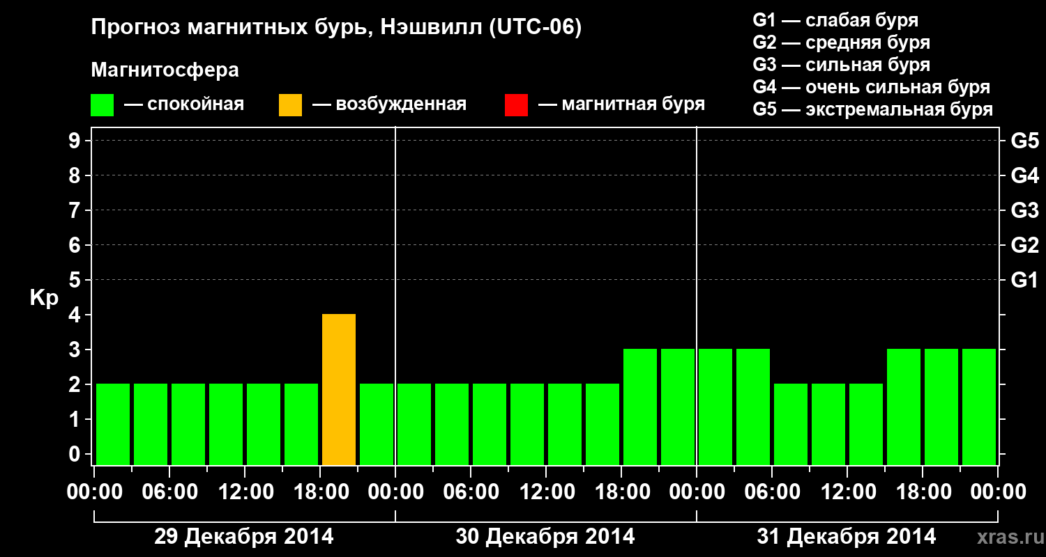 Прогноз магнитных бурь в Нэшвилле — 29 декабря 2014 года