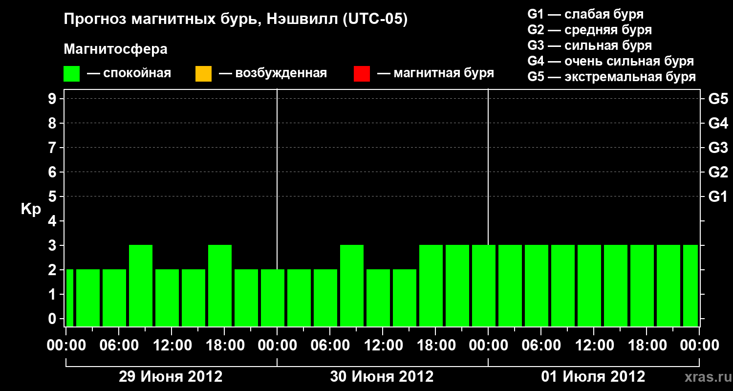 Прогноз магнитных бурь в Нэшвилле — 29 июня 2012 года
