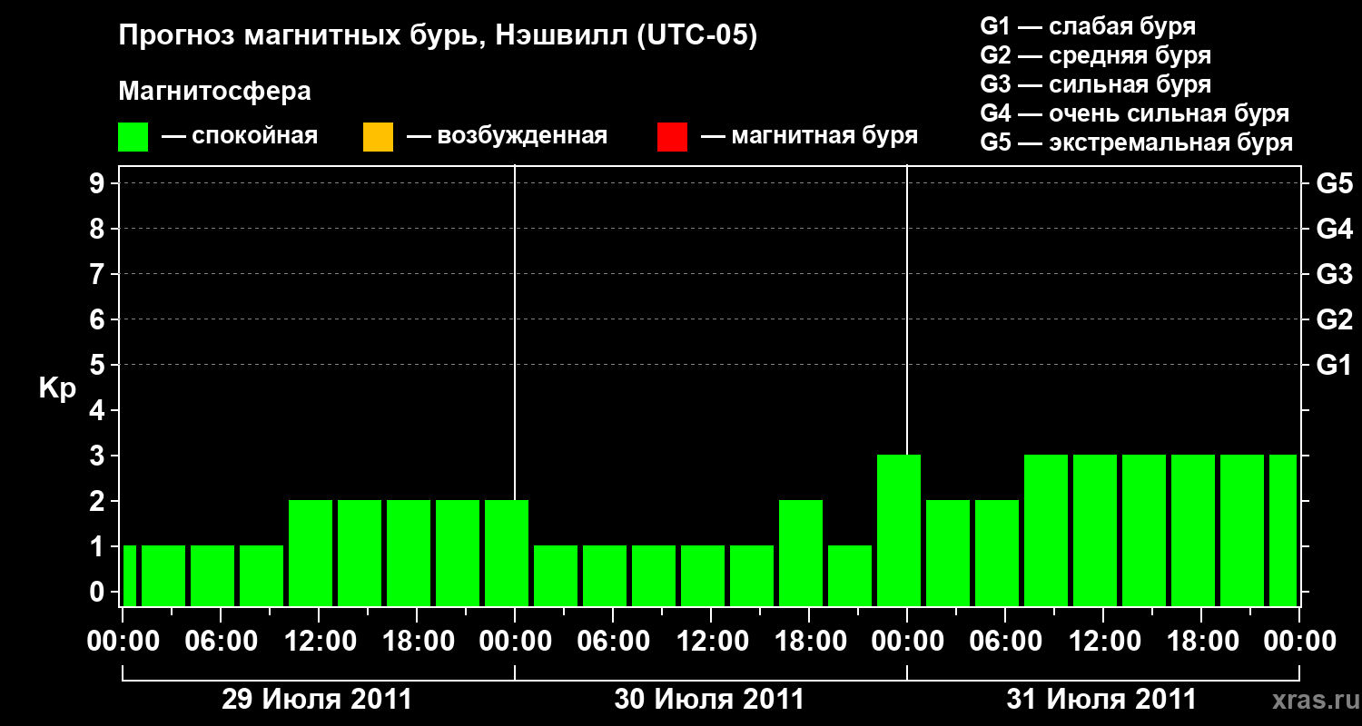 Прогноз магнитных бурь в Нэшвилле — 29 июля 2011 года