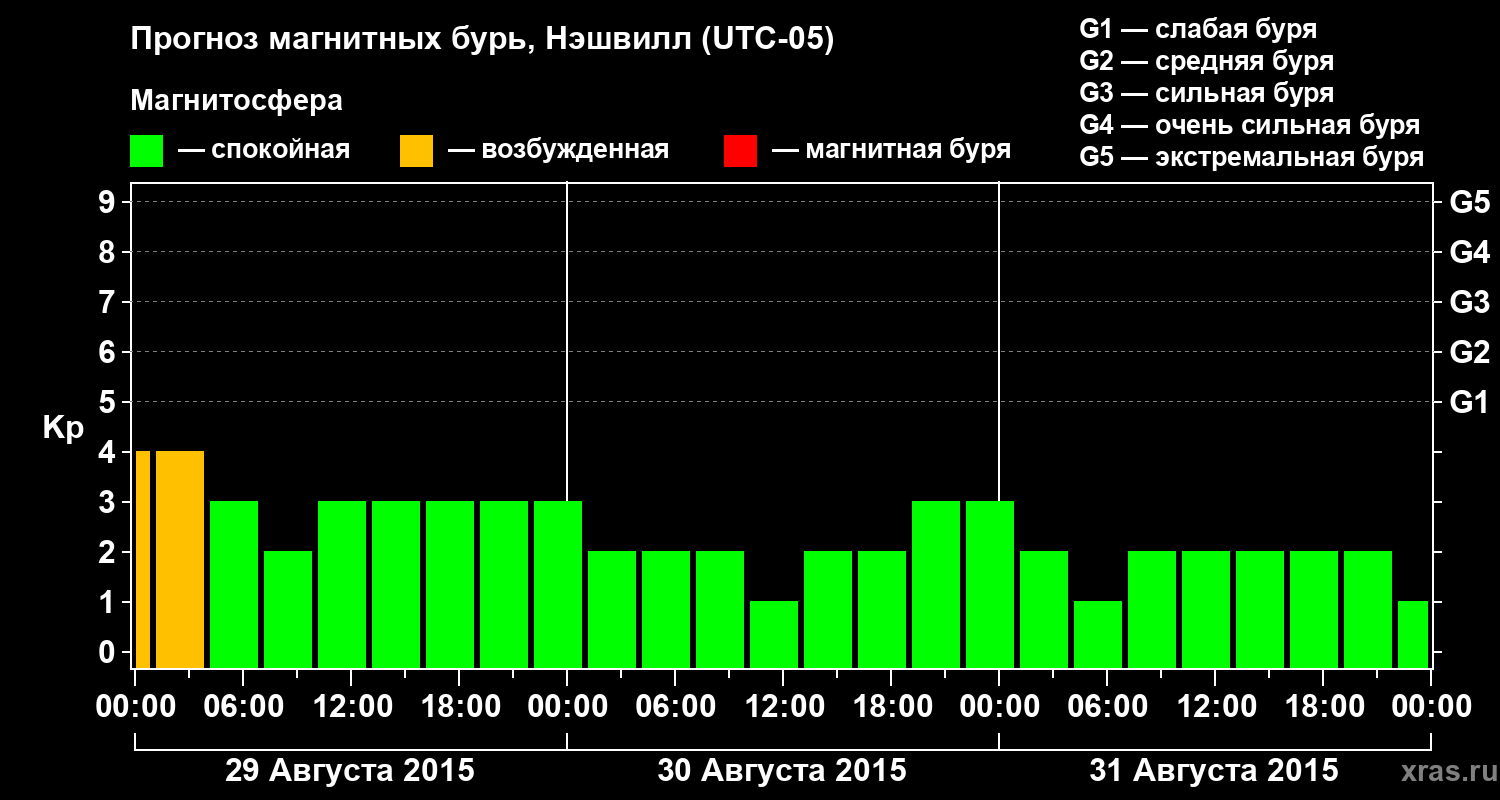 Прогноз магнитных бурь в Нэшвилле — 29 августа 2015 года