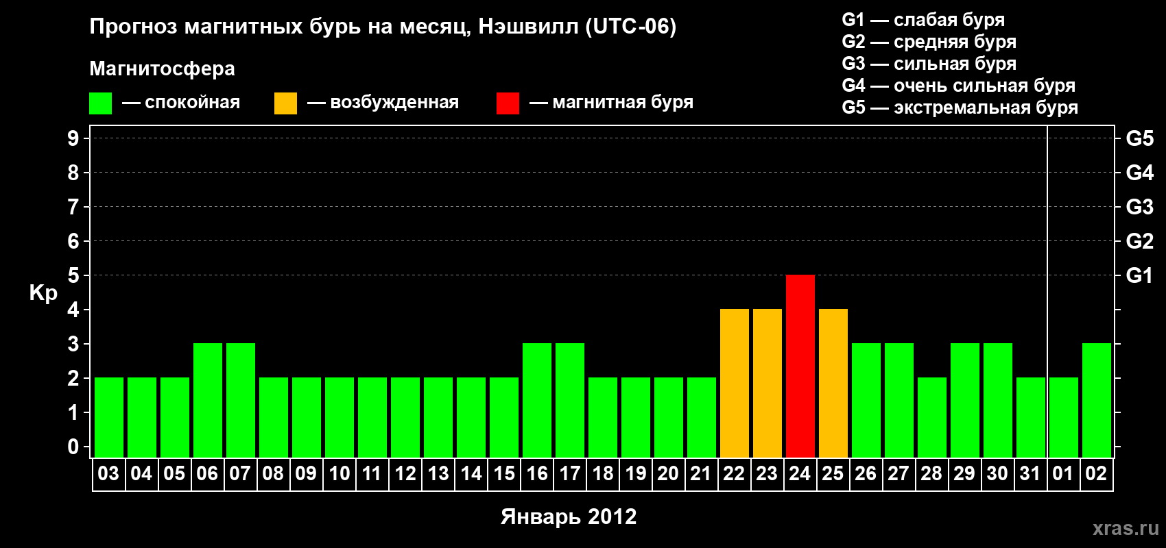 Прогноз магнитных бурь в Нэшвилле — 3 января 2012 года