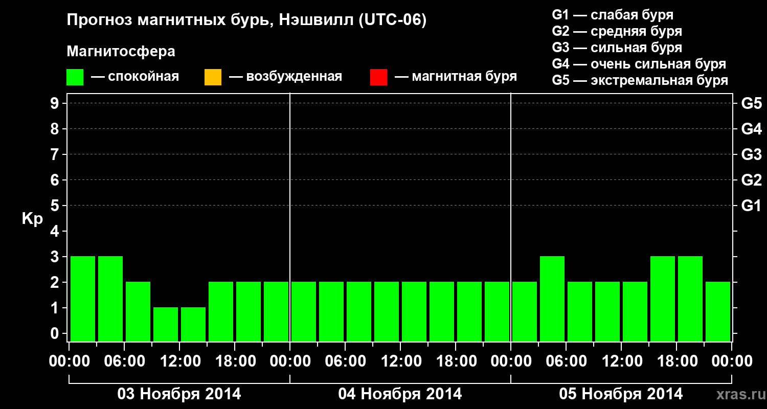 Прогноз магнитных бурь в Нэшвилле — 3 ноября 2014 года