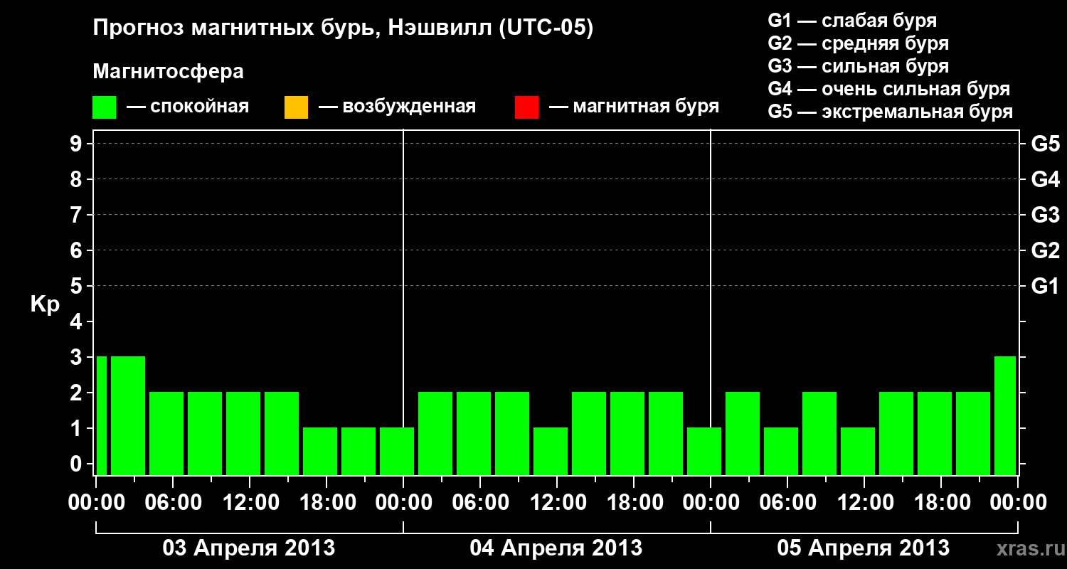 Прогноз магнитных бурь в Нэшвилле на 3 апреля 2013 года
