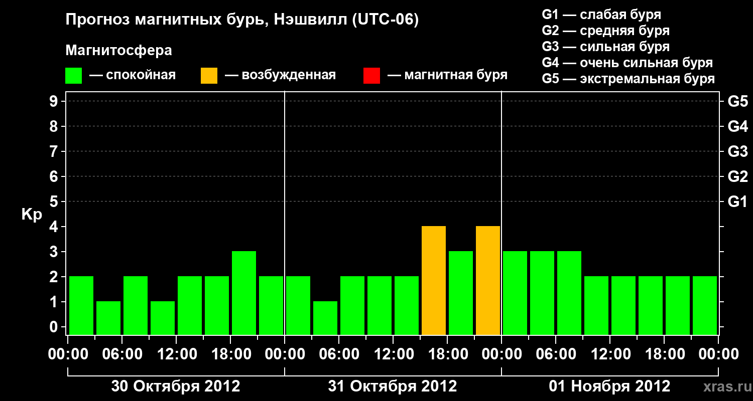Прогноз магнитных бурь в Нэшвилле — 30 октября 2012 года