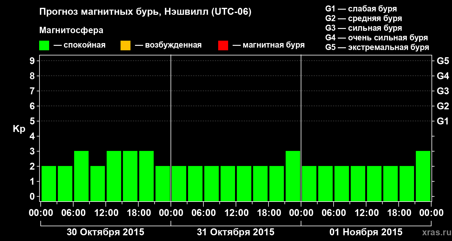 Прогноз магнитных бурь в Нэшвилле на 30 октября 2015 года
