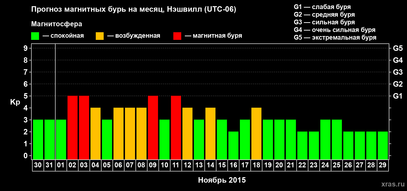 Прогноз магнитных бурь в Нэшвилле — 30 октября 2015 года