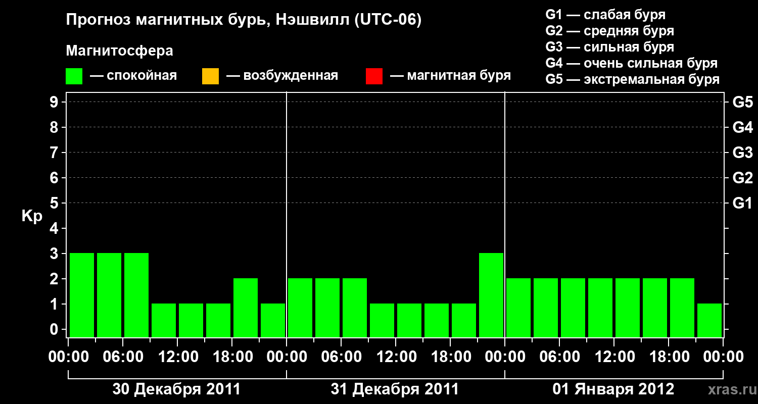 Прогноз магнитных бурь в Нэшвилле — 30 декабря 2011 года