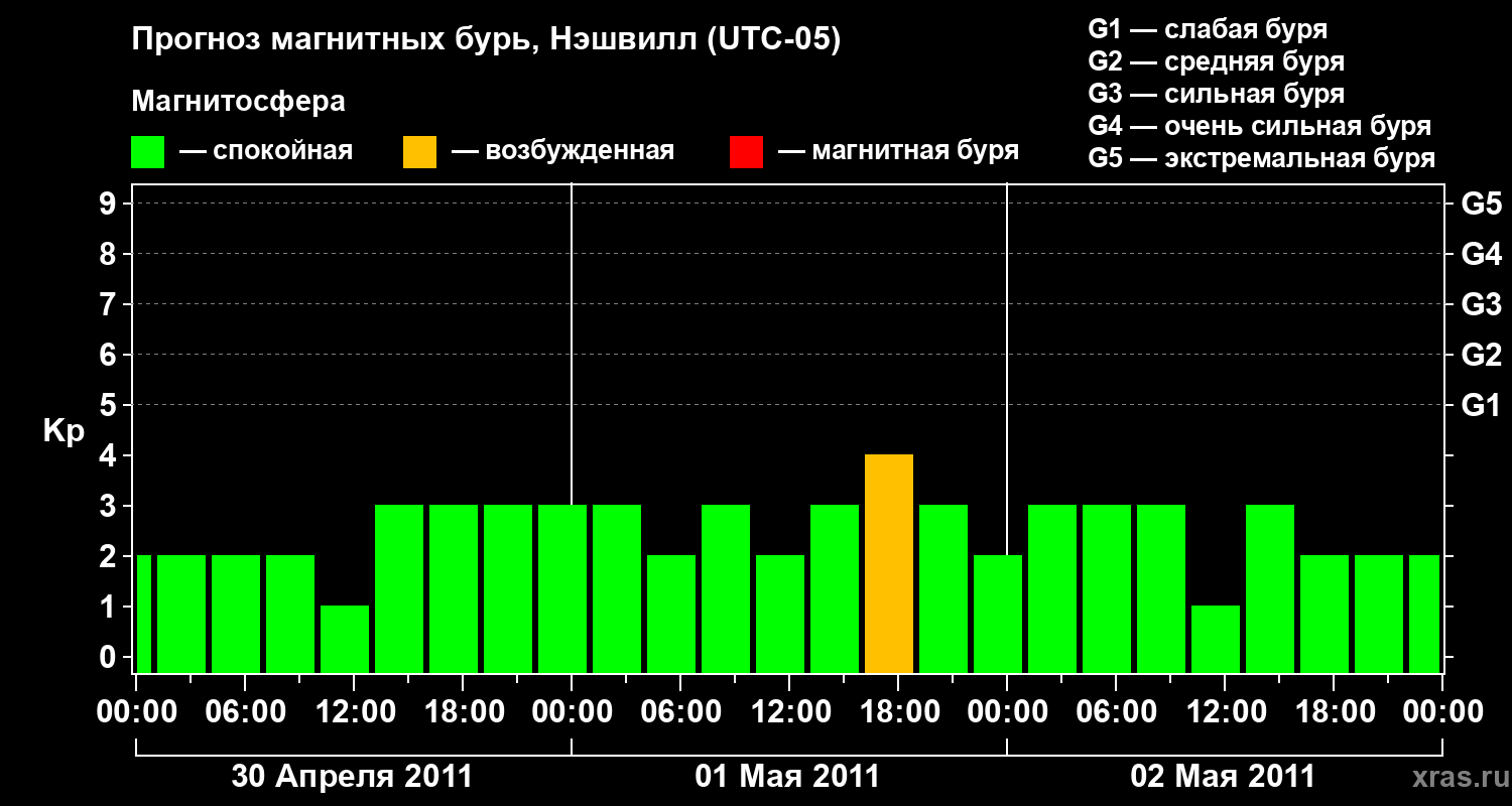 Прогноз магнитных бурь в Нэшвилле — 30 апреля 2011 года