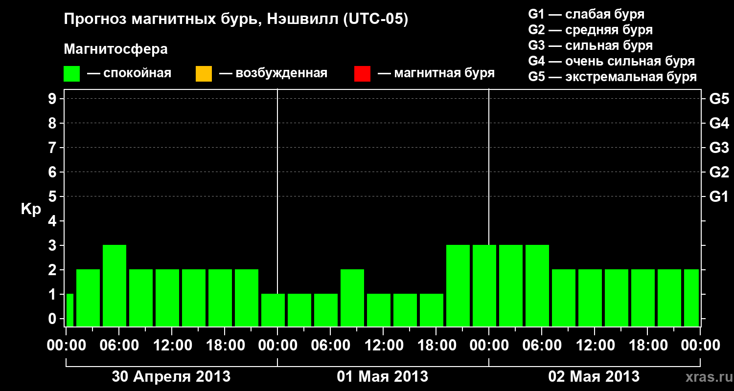 Прогноз магнитных бурь в Нэшвилле — 30 апреля 2013 года