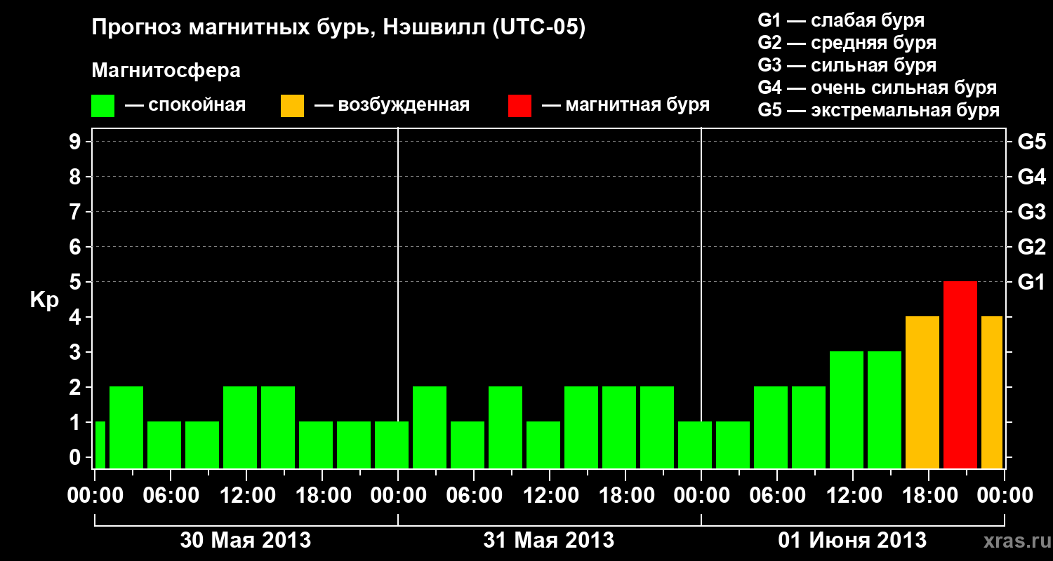 Прогноз магнитных бурь в Нэшвилле — 30 мая 2013 года