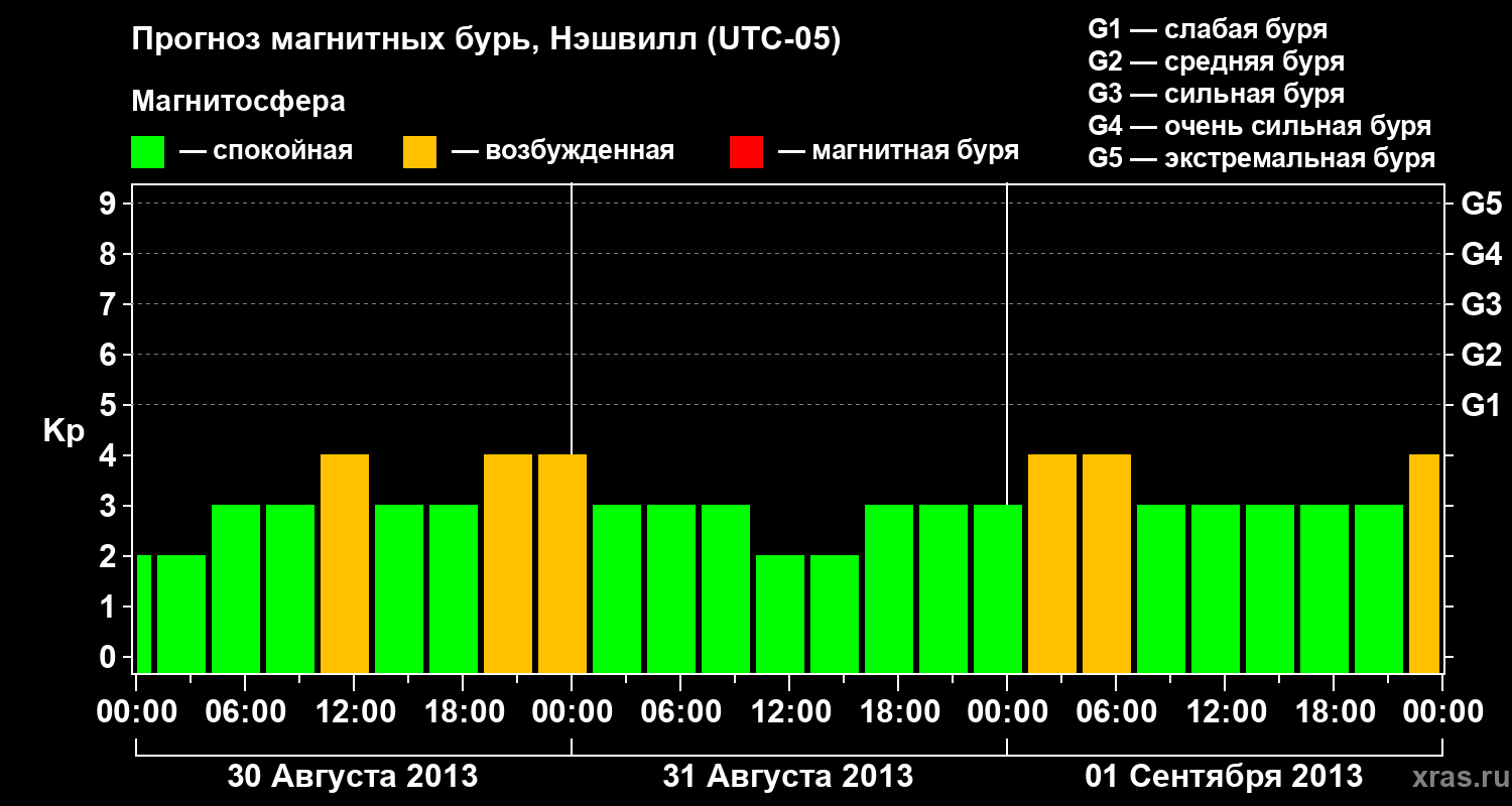 Прогноз магнитных бурь в Нэшвилле — 30 августа 2013 года