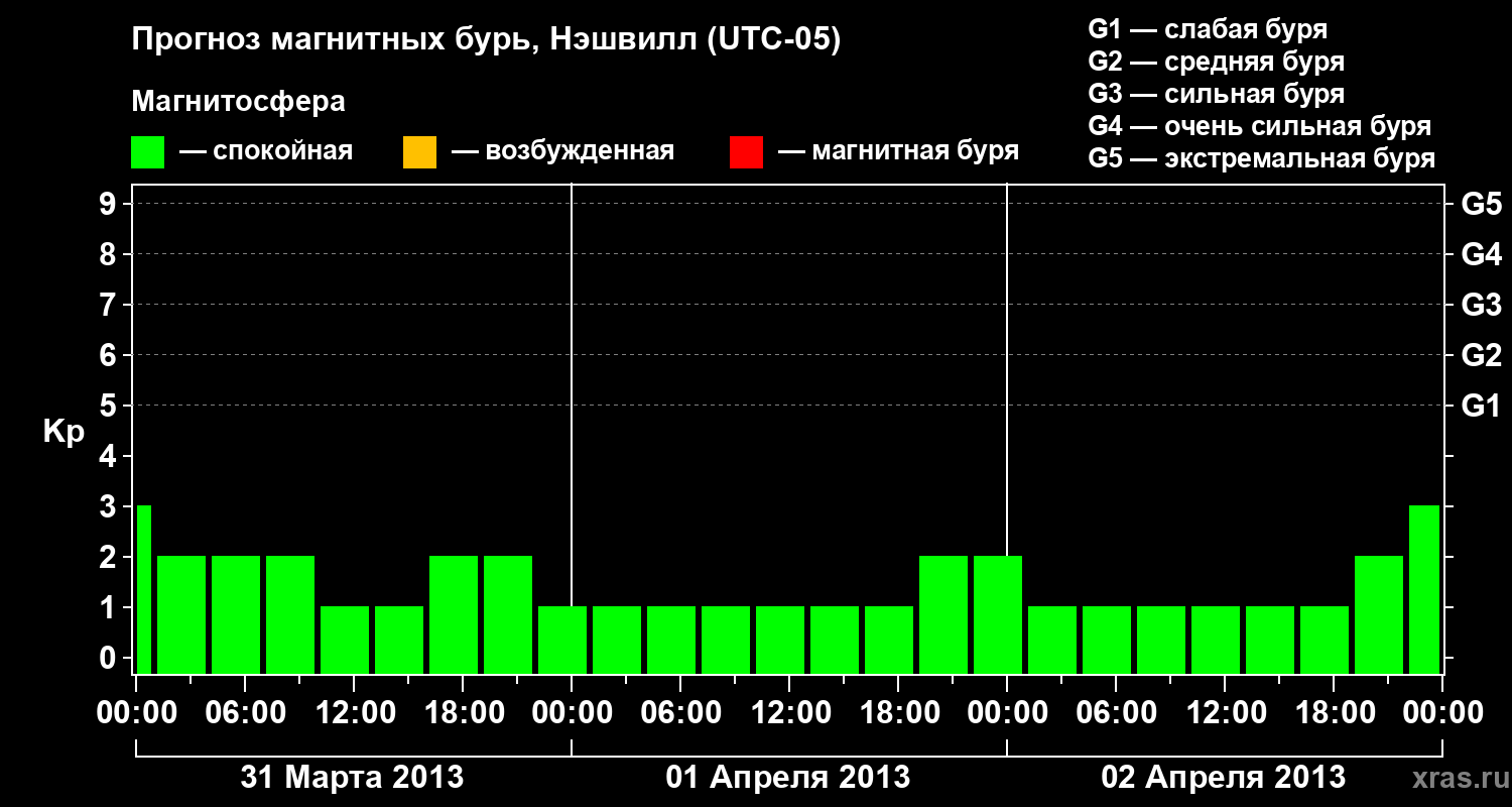 Прогноз магнитных бурь в Нэшвилле — 31 марта 2013 года