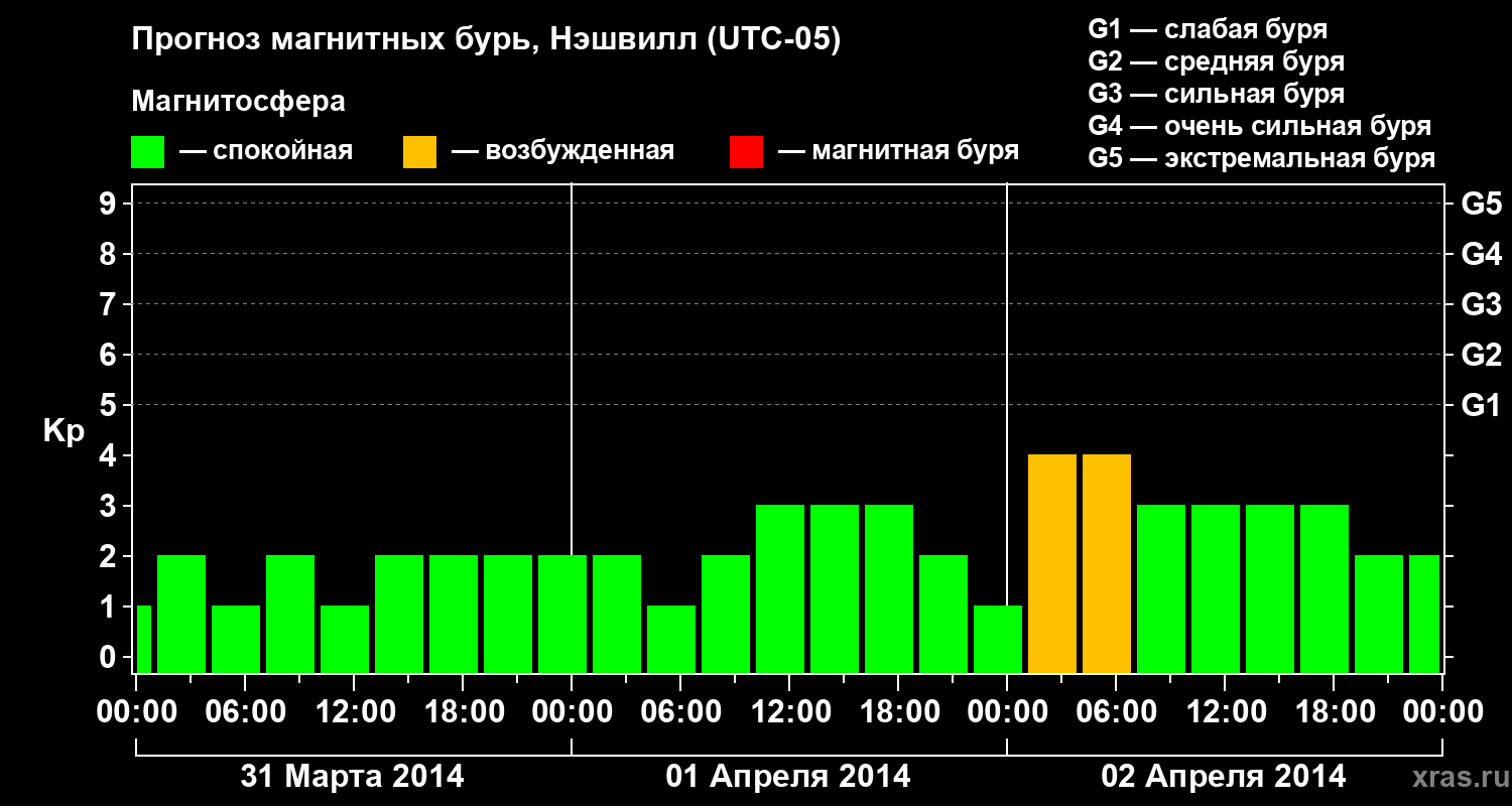 Прогноз магнитных бурь в Нэшвилле — 31 марта 2014 года