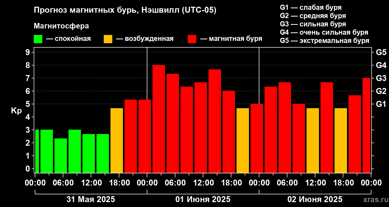 Прогноз магнитных бурь в Нэшвилле — 31 мая 2025 года