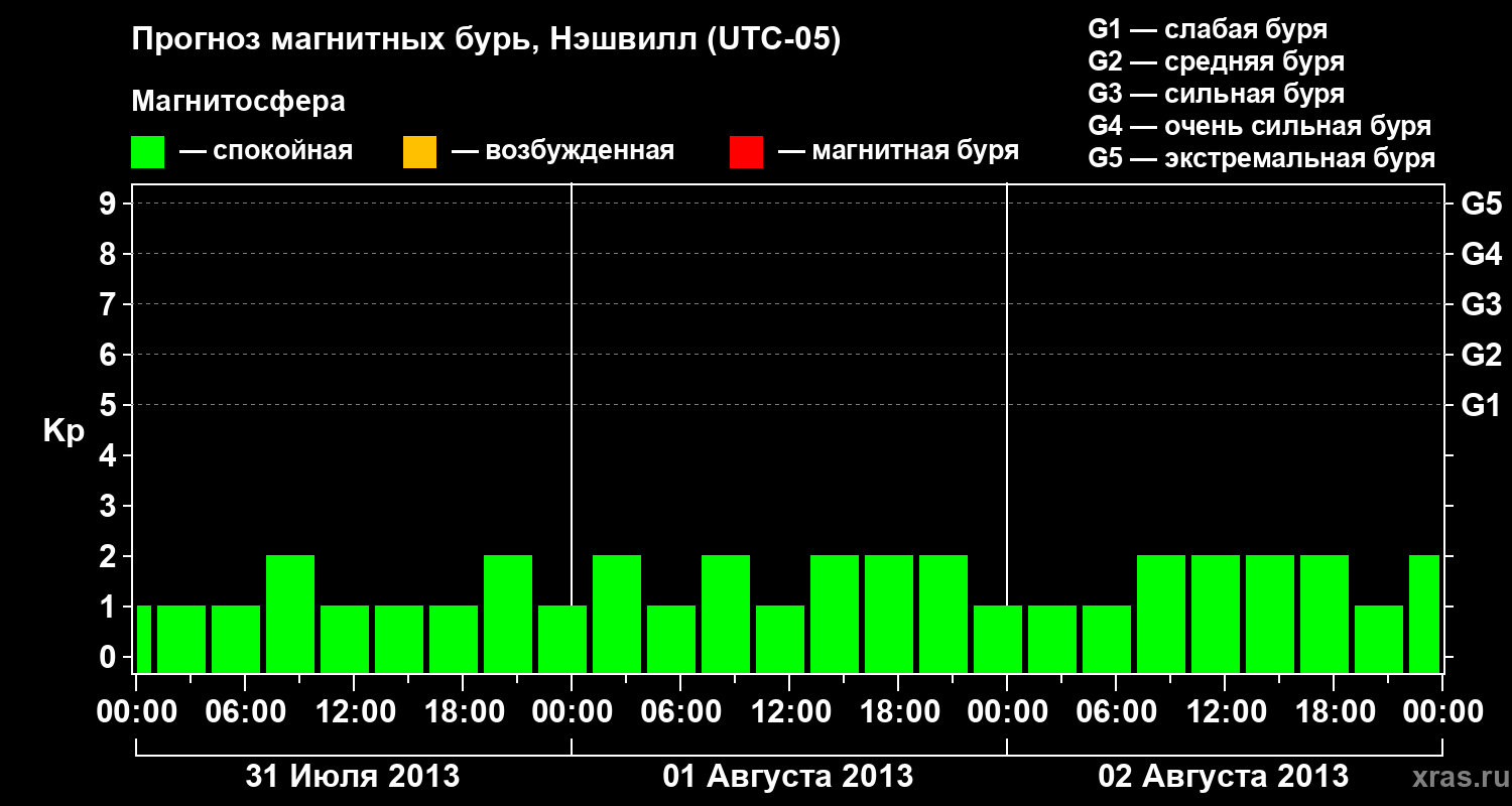 Прогноз магнитных бурь в Нэшвилле — 31 июля 2013 года