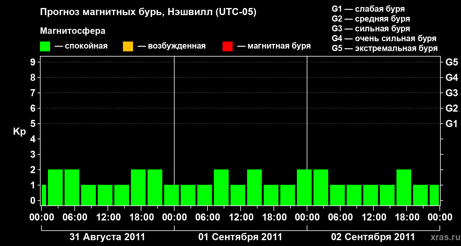 Прогноз магнитных бурь в Нэшвилле — 31 августа 2011 года