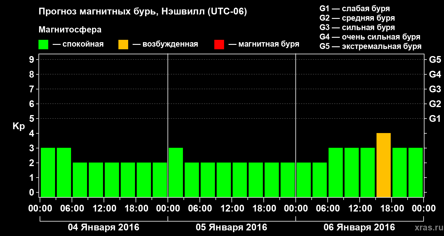 Прогноз магнитных бурь в Нэшвилле — 4 января 2016 года