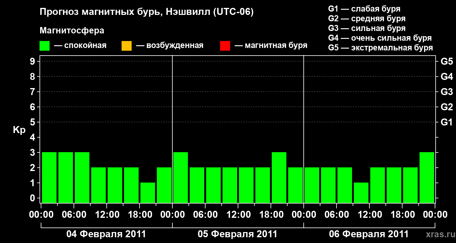 Прогноз магнитных бурь в Нэшвилле — 4 февраля 2011 года