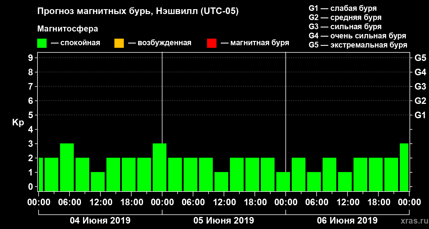 Прогноз магнитных бурь в Нэшвилле — 4 июня 2019 года