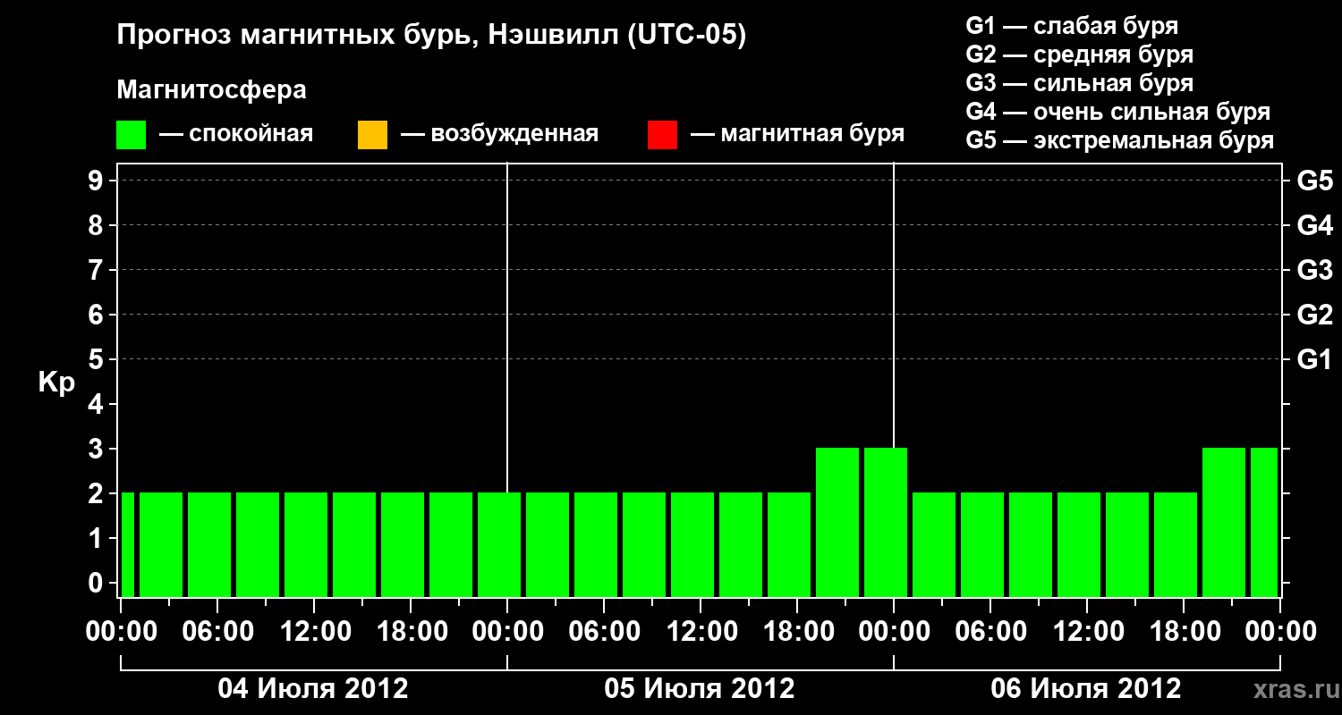 Прогноз магнитных бурь в Нэшвилле — 4 июля 2012 года