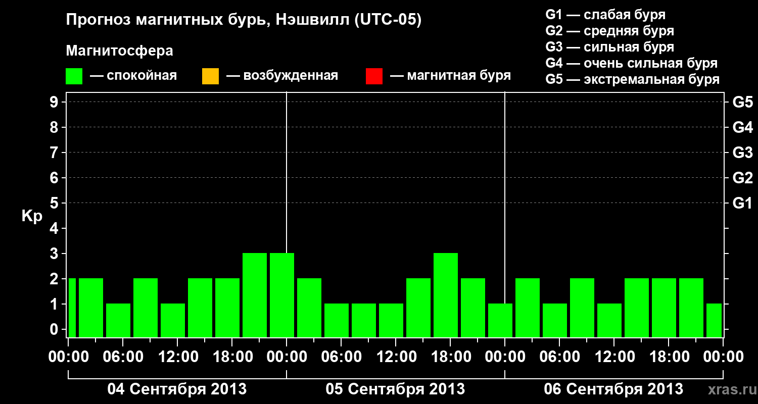 Прогноз магнитных бурь в Нэшвилле — 4 сентября 2013 года