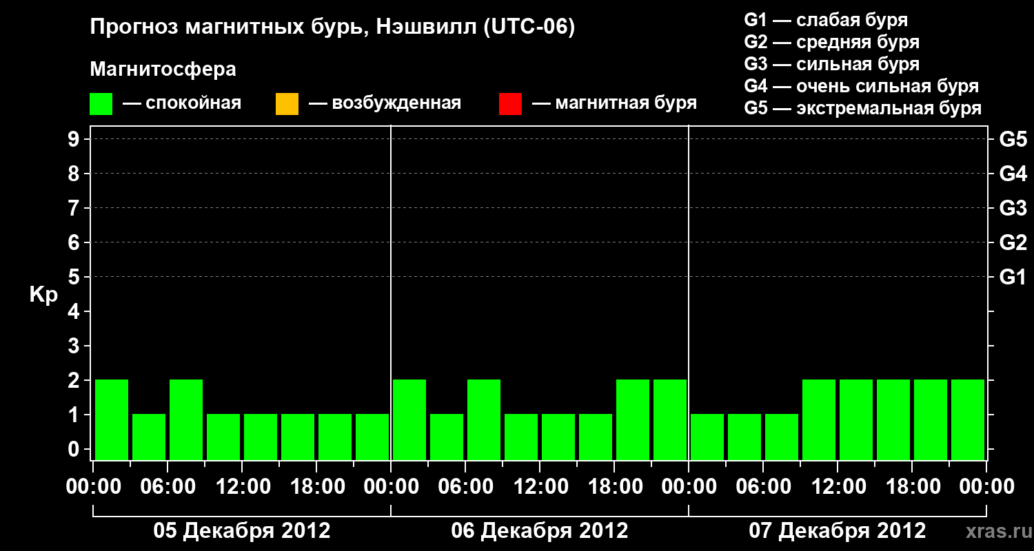 Прогноз магнитных бурь в Нэшвилле — 5 декабря 2012 года