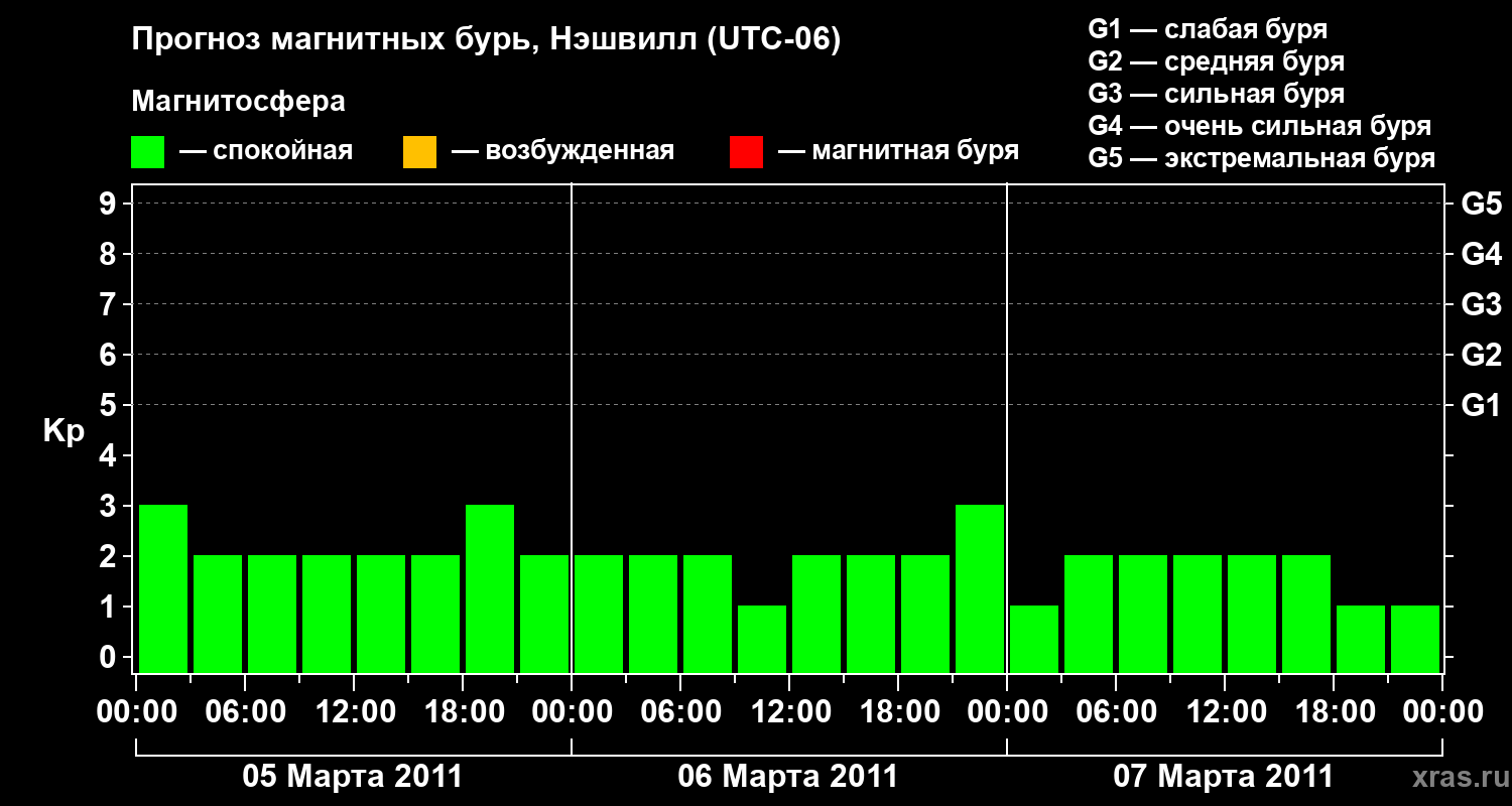 Прогноз магнитных бурь в Нэшвилле — 5 марта 2011 года