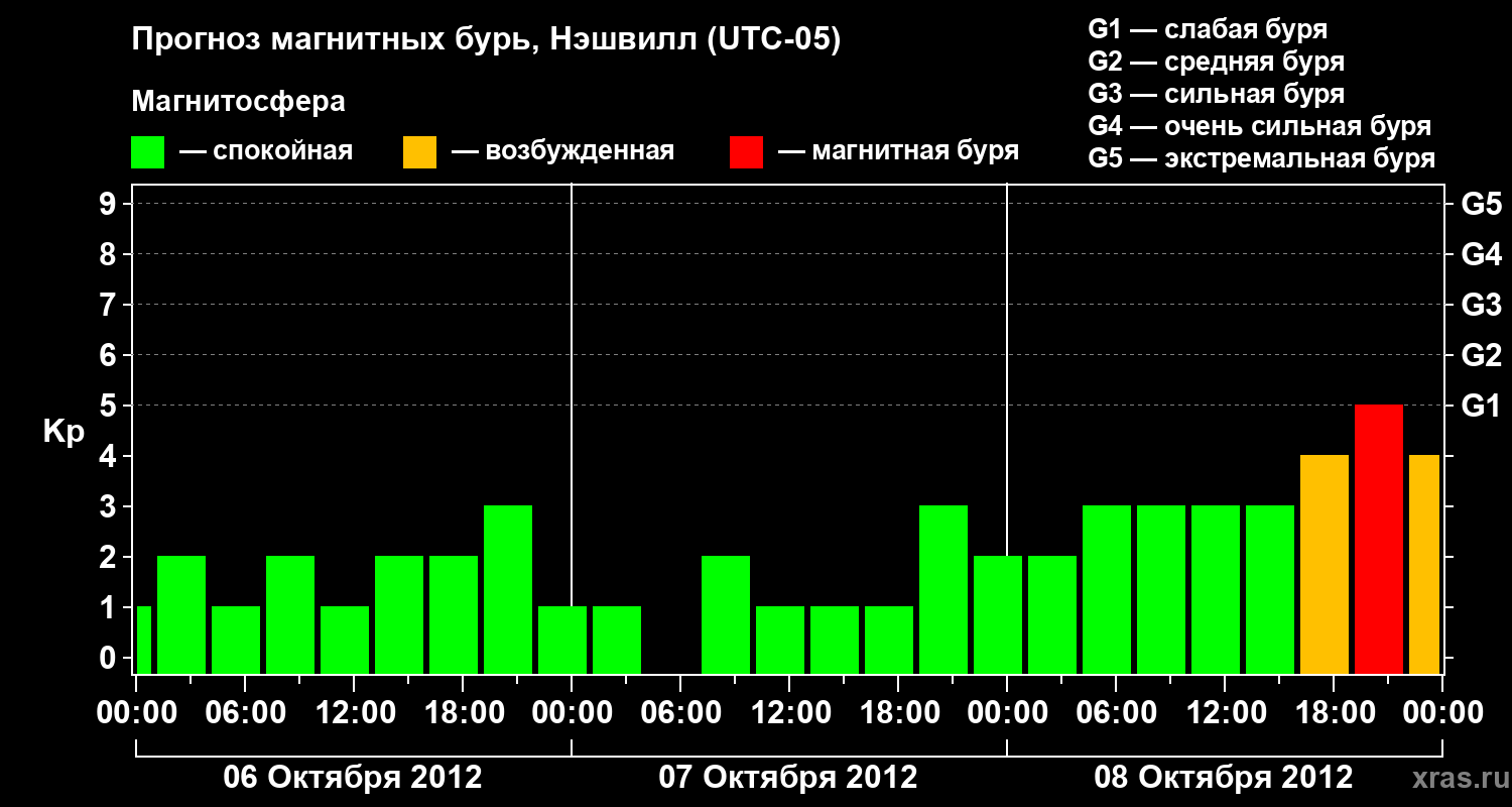 Прогноз магнитных бурь в Нэшвилле — 6 октября 2012 года