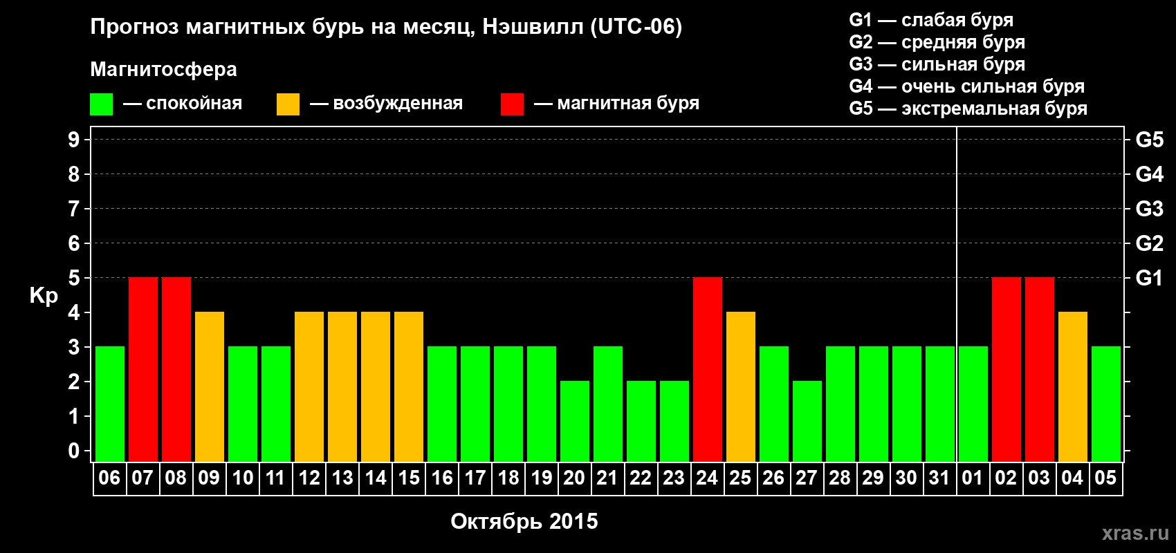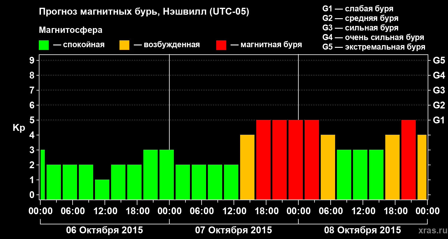 Прогноз магнитных бурь в Нэшвилле — 6 октября 2015 года