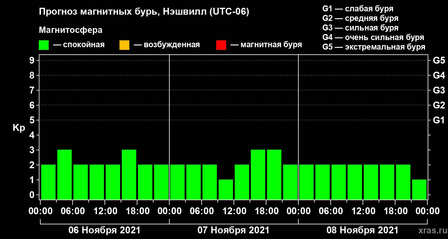 Прогноз магнитных бурь в Нэшвилле — 6 ноября 2021 года