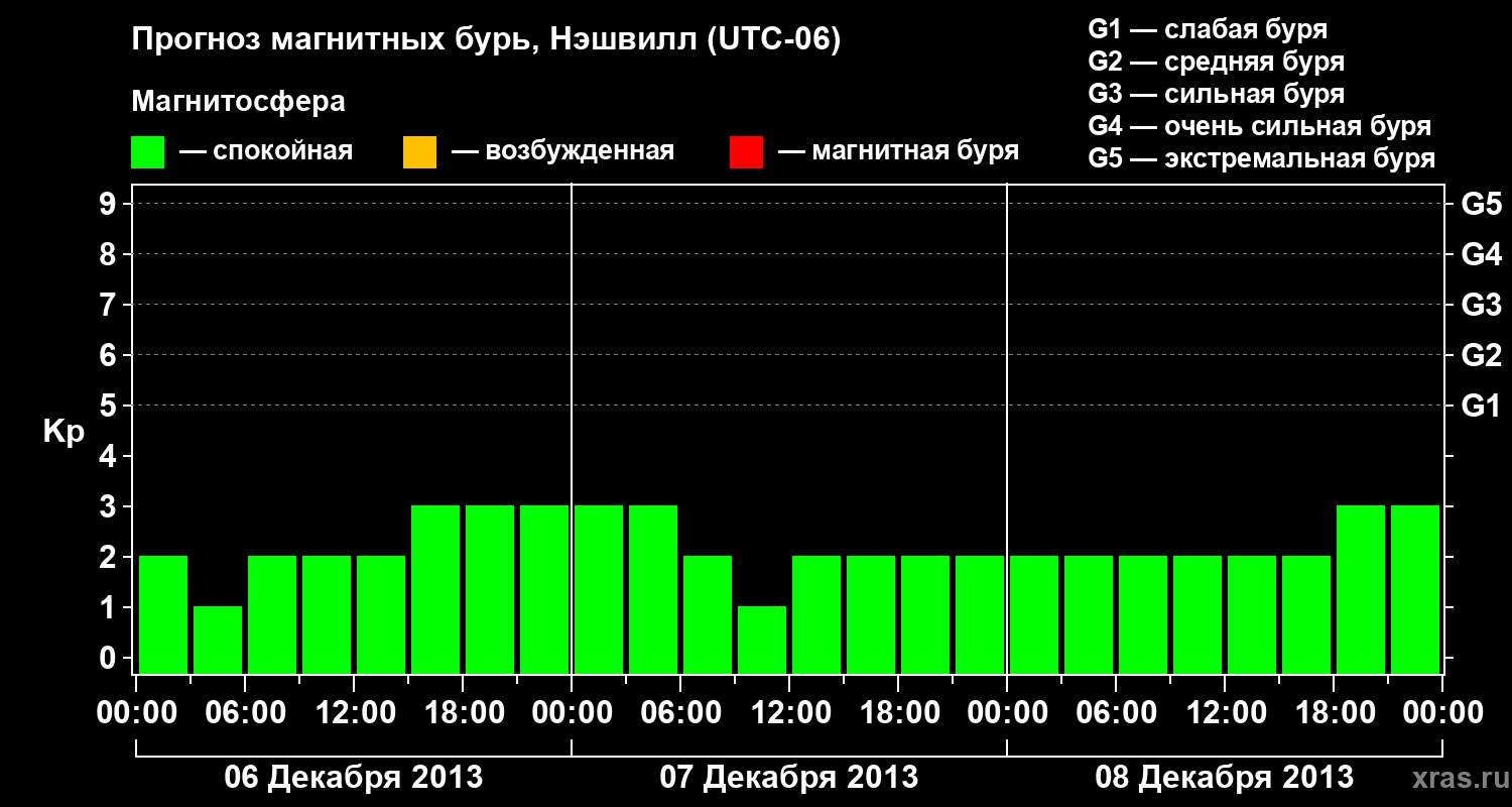 Прогноз магнитных бурь в Нэшвилле — 6 декабря 2013 года