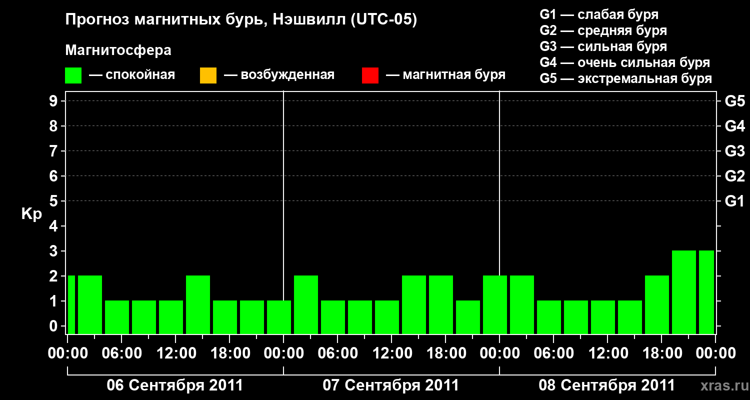Прогноз магнитных бурь в Нэшвилле — 6 сентября 2011 года