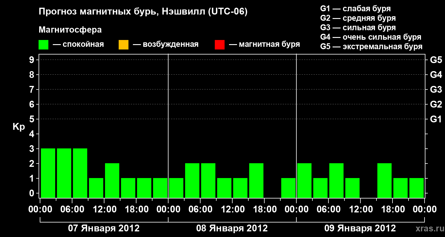 Прогноз магнитных бурь в Нэшвилле — 7 января 2012 года